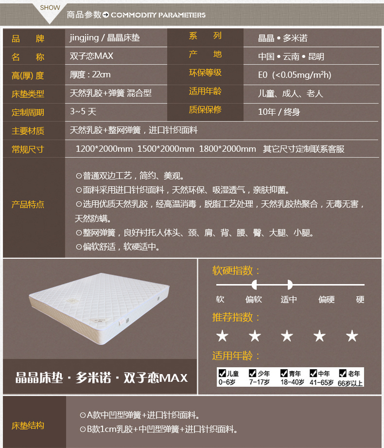 上一產(chǎn)品:晶晶床墊-多米諾·金牛戀M(fèi)AX - 真雙層獨(dú)立袋彈簧加棕床墊