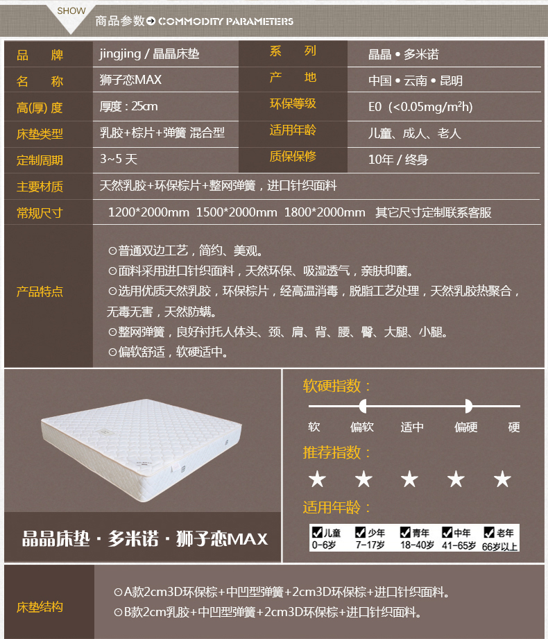 晶晶床墊-多米諾·獅子戀MAX - 正面乳膠背面棕兩用床墊