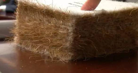 像這種椰棕材料,本身是比較脆,比較硬的,但是因?yàn)槔锩嬗昧舜罅康幕つz,來(lái)進(jìn)行粘合。從本次來(lái)看,用這種椰棕材料的,甲醛釋放量的不合格率在90%以上。